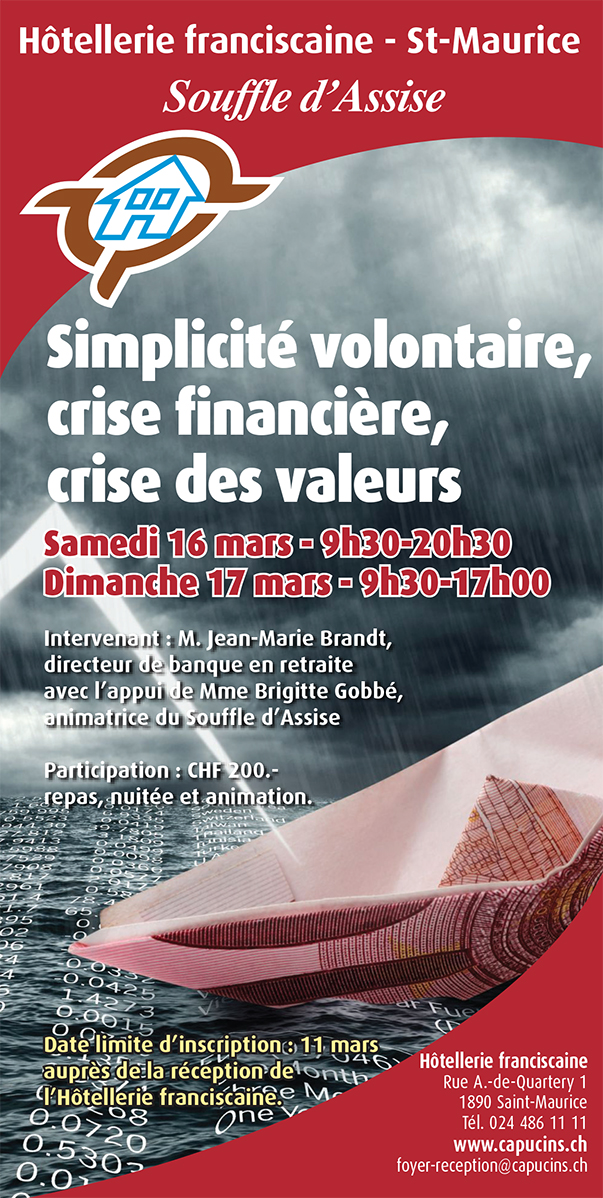Inscriptions: Foyer Franciscain, rue A. de-Quartery 1, 1890 Saint-Maurice – tél. 024 486 11 11